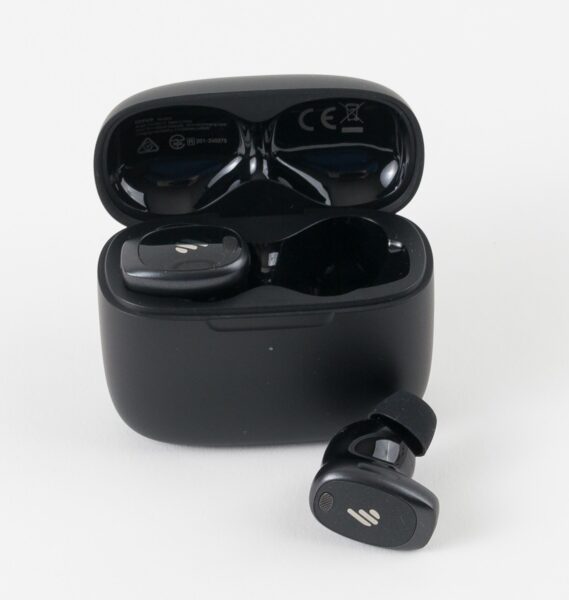 Die Edifier stehen etwas weiter raus als die üblichen In-Ear-Ohrhörer mit dem nach unten führendem Stab. Dies war für uns aber nur beim seitlichen Liegen im Bett oder auf dem Sofa ein kleiner Nachteil. Ansonsten gefällt uns dieses Design besser, was aber natürlich eine Geschmacksfrage ist.