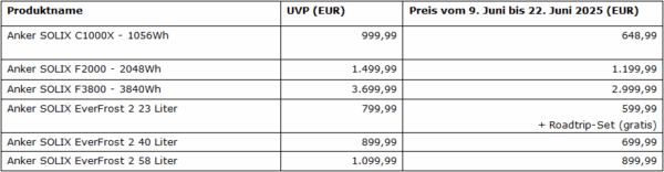 Im Rahmen des großen Anker SOLIX Summer Sales gibt es nicht nur Rabatte auf die portablen Kühlboxen, sondern auch auf diverse mobile Powerstations. Der Summer Sale ist vom 9. bis zum 22. Juni 2025 im Anker SOLIX Online Shop gültig.