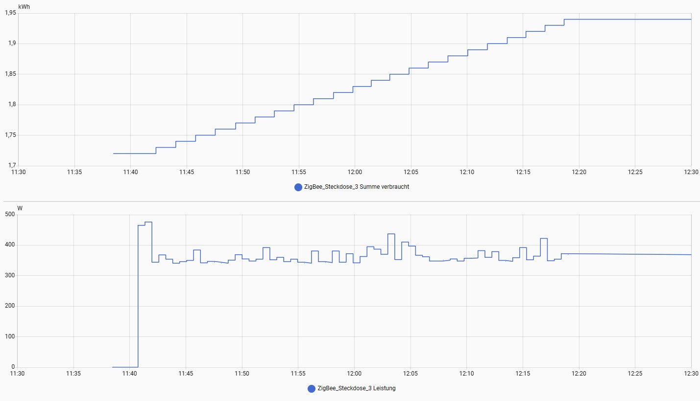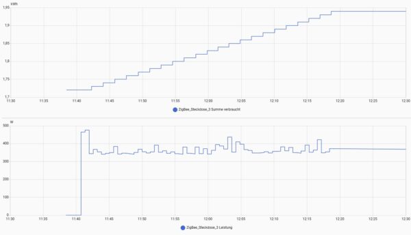 Zum Entladen habe ich wie gewohnt meinen PC genutzt und konnte insgesamt 230 Wh bei einer mittleren Last von 370 Watt entnehmen. Dies entspricht einem Wirkungsgrad von nur 81 Prozent.