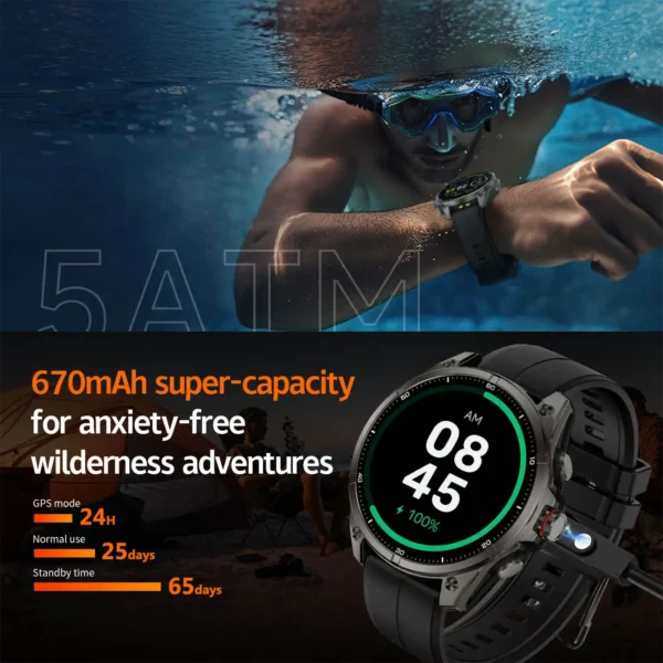 Built to endure the elements, the Apex FT has passed the U.S. Military Standard MIL-STD-810H tests for resistance to shock, heat, cold, and water. Its 5ATM waterproof rating (50 meters) ensures it performs reliably through rain, swimming, or outdoor workouts in any weather condition. Powered by a long-lasting 670mAh battery, the Apex FT delivers up to 65 days of standby time, ensuring uninterrupted performance during extended trips. It easily syncs with Apple Health, Google Fit, and Strava, allowing you to view and manage all your health data in one place.