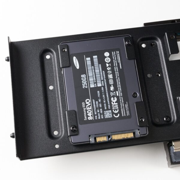 Festplatten und SSDs können nur auf der rückseitigen Halterung verbaut werden. Es gibt jeweils zwei Plätze für 3,5-Zoll-Exemplare als auch 2,5-Zoll-Versionen. Für so ein großes Gehäuse ist dies trotzdem recht wenig.