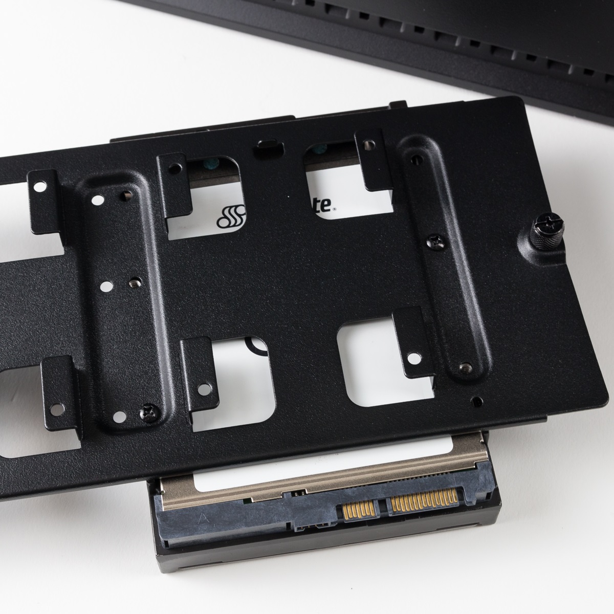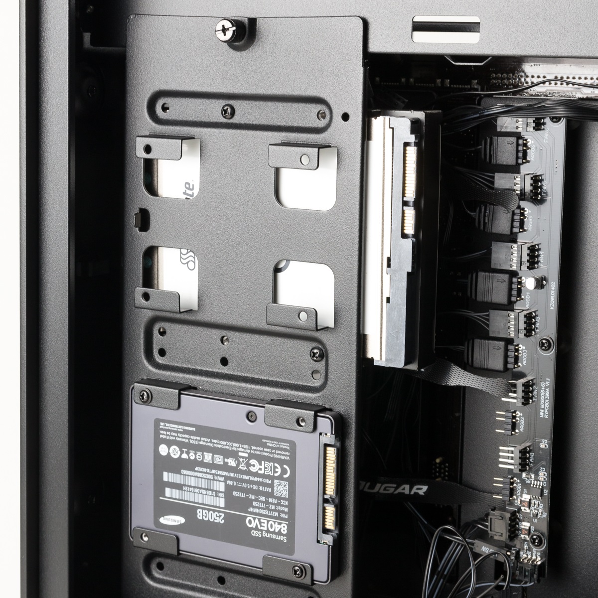 Festplatten und SSDs können nur auf der rückseitigen Halterung verbaut werden. Es gibt jeweils zwei Plätze für 3,5-Zoll-Exemplare als auch 2,5-Zoll-Versionen. Für so ein großes Gehäuse ist dies trotzdem recht wenig.
