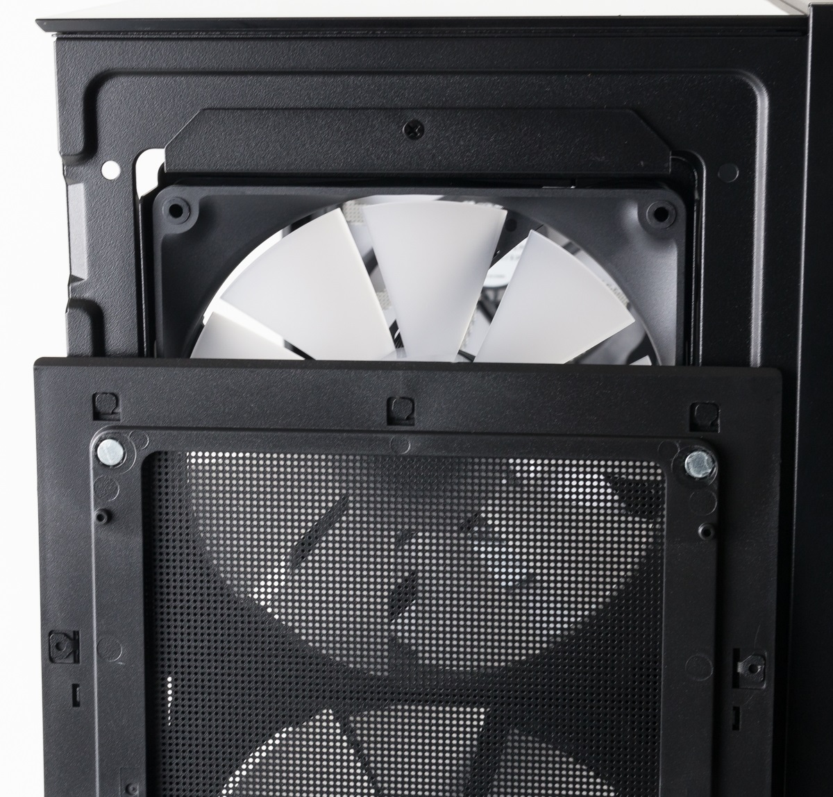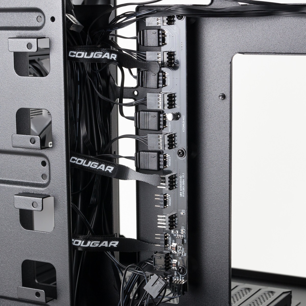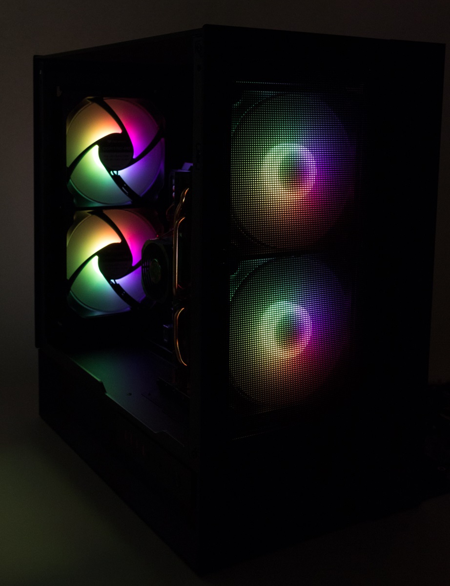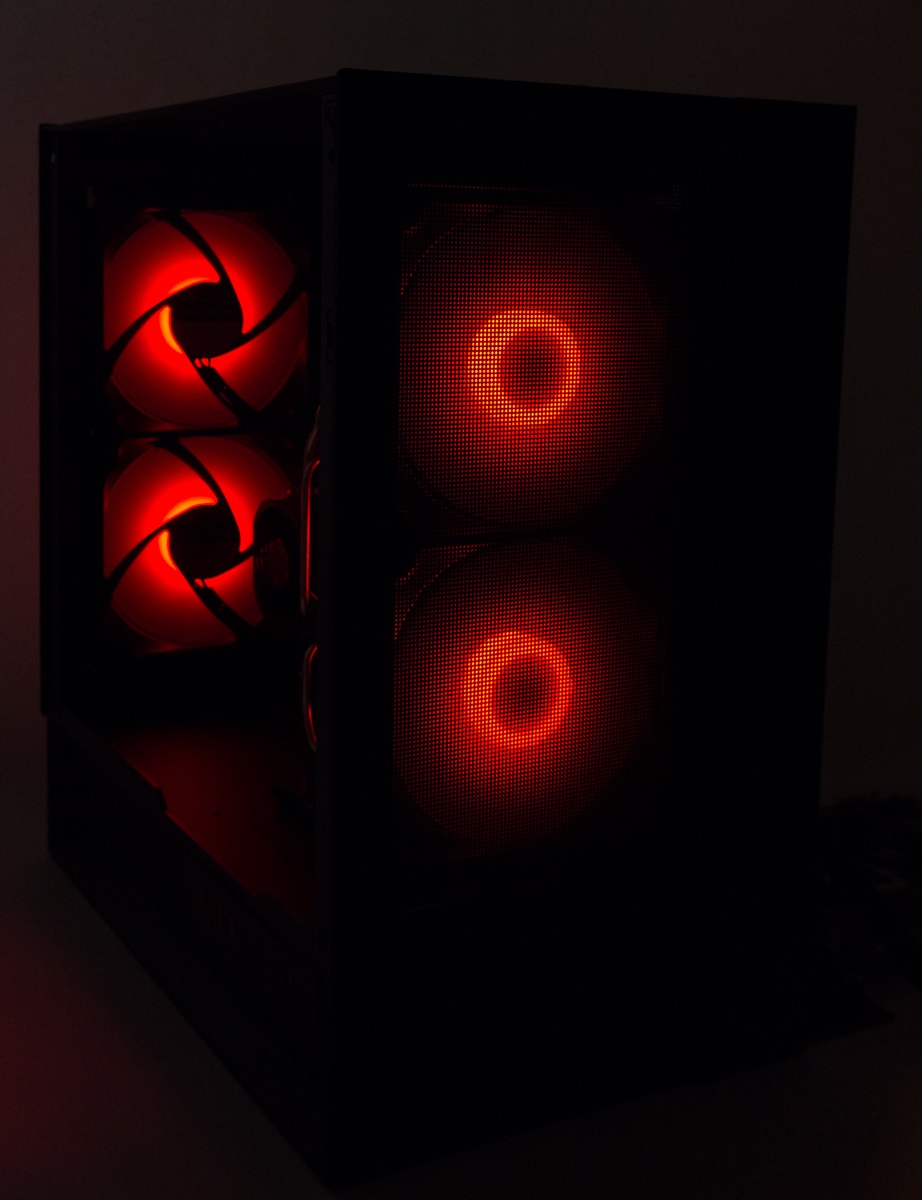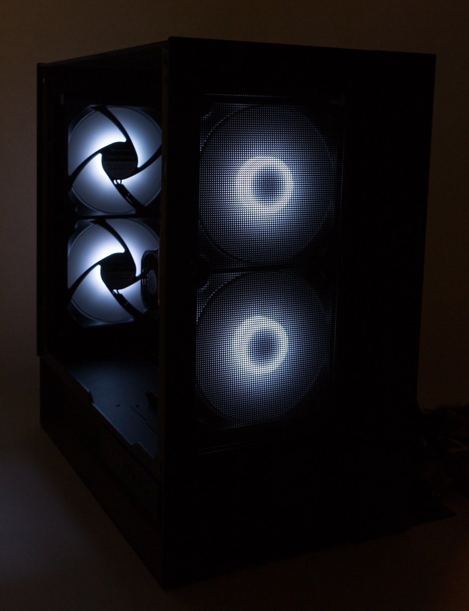 Auf der Rückseite des Gehäuses wurde ein Lüfter- und Beleuchtungs-Hub verbaut sowie die vier mitgelieferten Lüfter bereits angeschlossen. Insgesamt ist Platz für sechs Exemplare, sodass noch zwei Lüfter zusätzlich angeschlossen werden könnten.