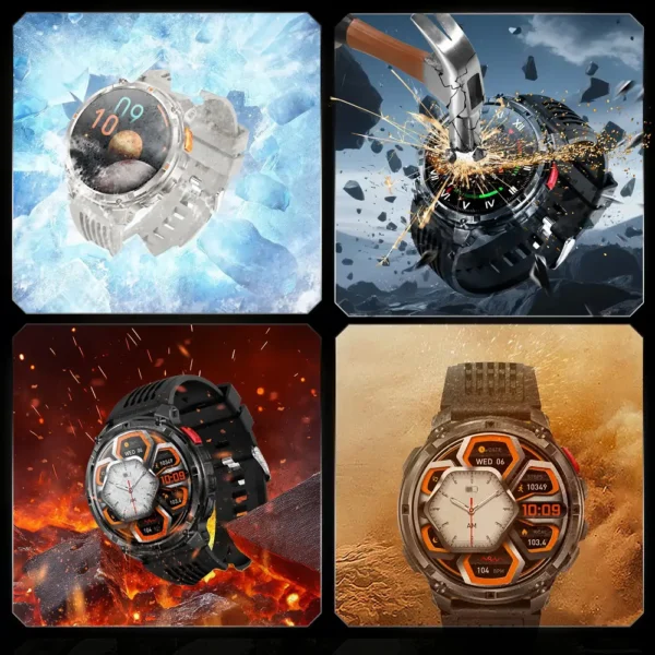 The watch features a large, 1.7-inch display that delivers vivid visuals and a fluid touch experience, elevating your interaction. The PowerMax is built with a military-grade, all-metal frame, ensuring exceptional durability to withstand the harshest environments while maintaining a stylish and modern aesthetic. Additionally, it features a built-in LED flashlight, making it an ideal companion for both outdoor adventures and everyday convenience. With 5ATM water resistance, the PowerMax is ready for swimming, workouts, or unexpected weather conditions. It also supports Bluetooth calling, ensuring you remain connected wherever you go.