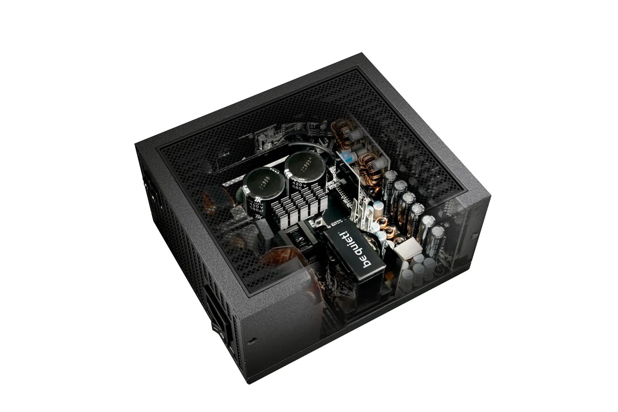 Der neu entwickelte massive Aluminiumkühlkörper unterstützt das semi-passive Kühlkonzept und verbessert zudem die Langlebigkeit der Komponenten. Über einen Schalter auf der Rückseite des Netzteils kann zwischen einem aktiven Kühlmodus, bei dem der Silent-Wings-Lüfter permanent läuft, und einem semi-passiven Modus gewechselt werden. Im semi-passiven Modus ist der Lüfter im Ruhemodus und dreht sich nicht, dieser wird erst dazugeschaltet, wenn für anspruchsvollere Anwendungen zusätzliche Kühlung erforderlich ist. Der Lüfter ist direkt in den Kühlkörper integriert, wodurch er unempfindlich gegenüber Vibrationen ist. Ein 6-poliger Lüftermotor und ein Fluid-Dynamic-Lager sorgen letztlich für eine außergewöhnlich lange Lebensdauer und einen minimalen Stromverbrauch.