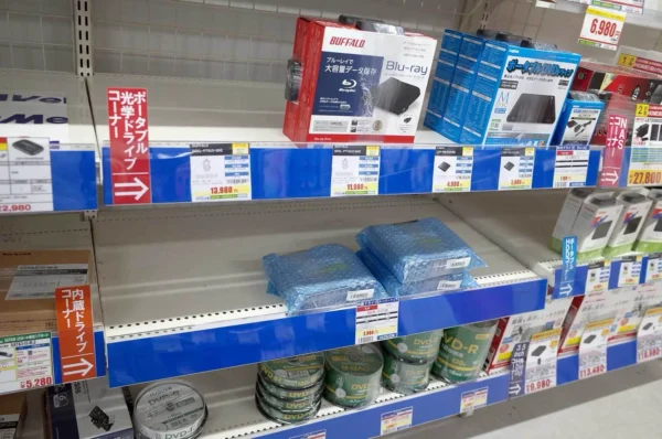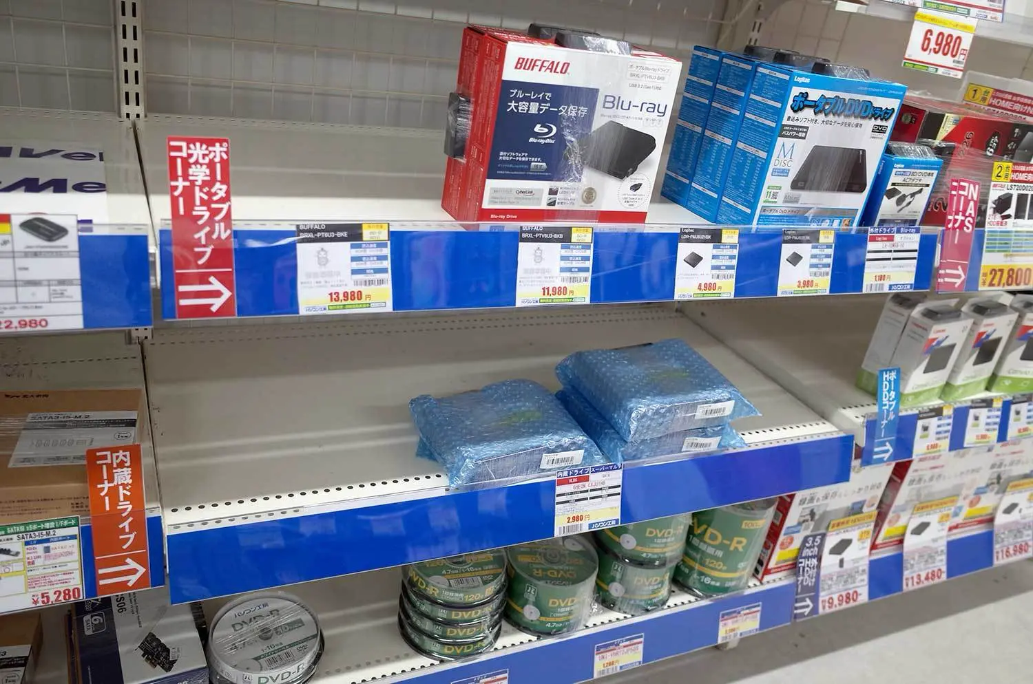 In Tokios Technikviertel Akihabara berichten Händler, dass Blu-ray-Laufwerke derzeit schneller ausverkauft sind, als sie nachbestellt werden können. Besonders gefragt sind interne BD-R-Laufwerke, die für ihre Geschwindigkeit und Langlebigkeit bekannt sind – allerdings schwer zu verbauen, da moderne PC-Gehäuse kaum noch Laufwerkschächte bieten. Externe Laufwerke sind zwar leichter anzuschließen, gelten jedoch als langsamer und empfindlicher – ein Kompromiss, den viele Käufer nur ungern eingehen.
