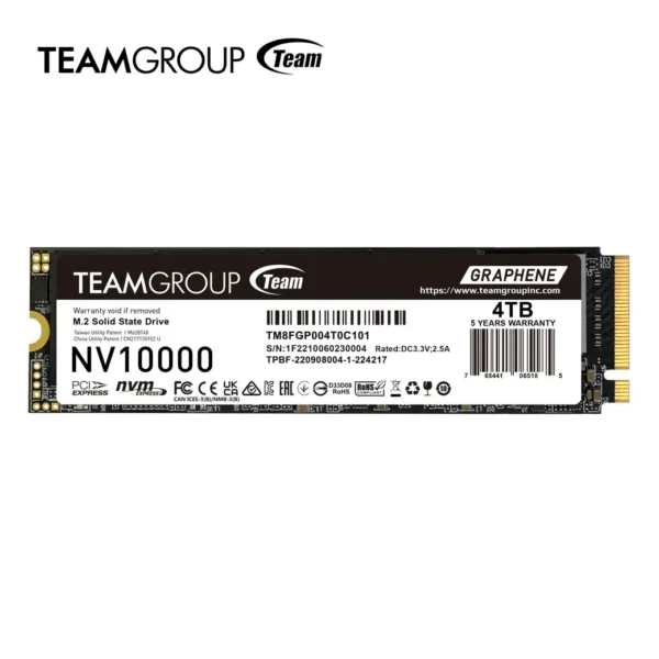 Die TEAMGROUP NV10000 M.2 PCIe 5.0 SSD verfügt über fortschrittliche 3D-NAND-Flash-Technologie und die neueste PCIe Gen5 x4-Schnittstelle und bietet hervorragende Lesegeschwindigkeiten von bis zu 10.000 MB/s. Die NV10000 ist mit Kapazitäten von 1 TB, 2 TB und 4 TB erhältlich, mit den neuesten Intel- und AMD-Plattformen kompatibel und eignet sich sowohl für Desktops als auch für Laptops. Sie kombiniert hohe Kapazität mit überragender Haltbarkeit und ist mit dem exklusiven, patentierten Graphen-Wärmeableitungslabel von TEAMGROUP【1】 ausgestattet,das die Betriebstemperaturen effektiv senkt, die Wärmeeffizienz verbessert und selbst bei längerem Betrieb eine konstante Leistung gewährleistet.
