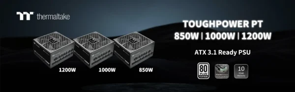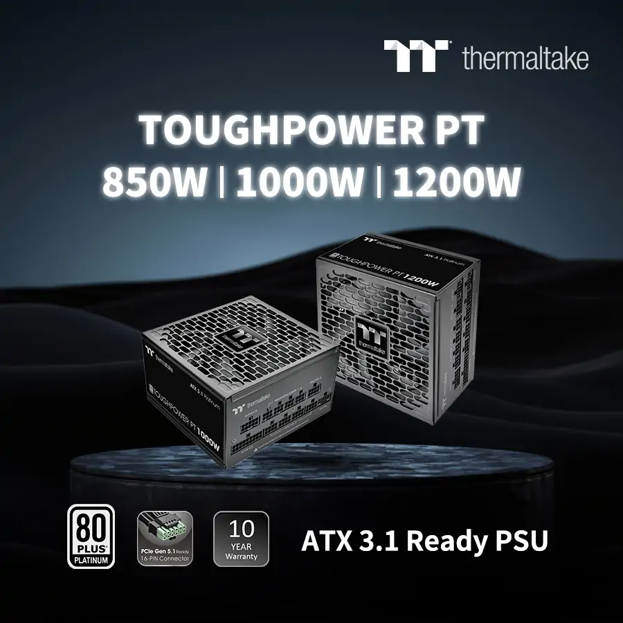 Thermaltake, a leading PC DIY brand for premium hardware solutions, proudly announces the Toughpower PT Platinum Series, available in 850W, 1000W, and 1200W models. Engineered for enthusiasts, creators, and professionals, the PT Platinum Series delivers Intel ATX 3.1 compliance, native PCIe Gen 5.1 support, and 80 PLUS® Platinum certification, ensuring rock-solid performance, modern compatibility, and exceptional efficiency.