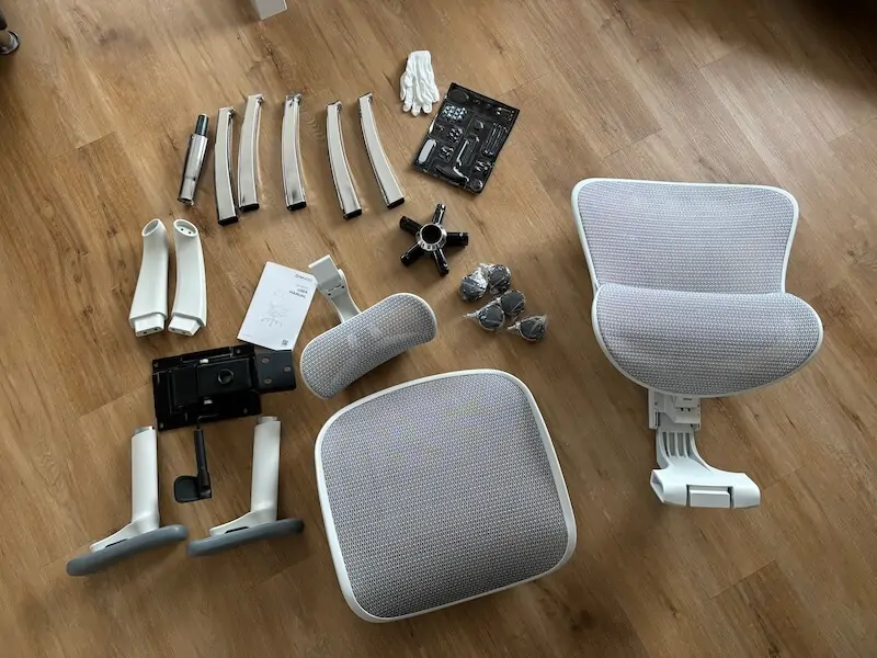 Der Stuhl besteht aus wenigen Hauptteilen (Rollen-/Fußkreuz, Gasfeder, Sitz, Rückenlehne, Armlehnen, Kopfstütze). Der Aufbau war allein in ca. 20–30 Minuten erledigt. Die Anleitung ist logisch, die Passungen präzise. Im Vergleich zu manch anderem Ergonomie-Stuhl wirkt der Montageprozess schlank und unkompliziert.