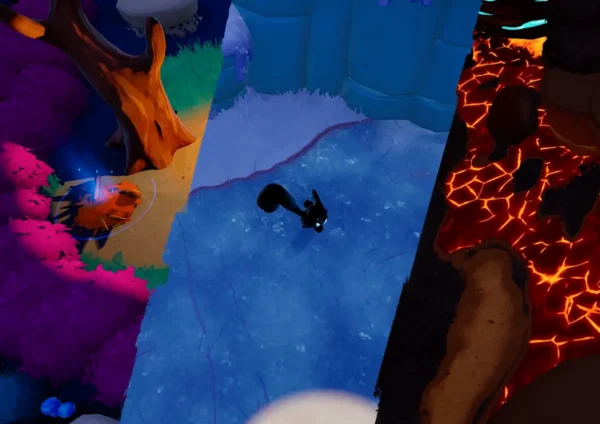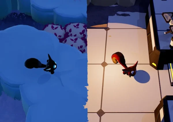 Players must creatively use the environment to terrify Hoomanz until they flee the planet in fear. Shoo’s mischief-filled toolkit includes luring enemies with purrs, snapping twigs, throwing bottles, sabotaging lights, or even pulling off frozen yeti jumpscares. Every encounter encourages experimentation, rewarding inventive ways to send the clueless invaders packing. Players can also dash through nature’s obstacle courses, explore the world’s whimsical landscapes, and rescue creatures along the way.