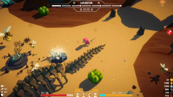 - Two gameplay phases: defend against waves, then explore to rebuild and prepare.