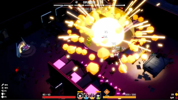 - Top-down roguelite combining hack ’n‘ slash combat with base-building strategy.