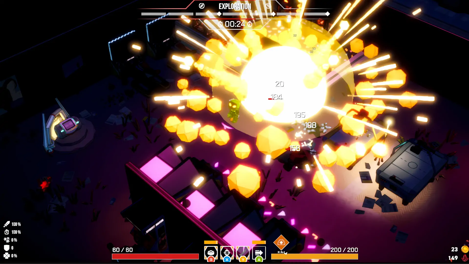 - Top-down roguelite combining hack ’n‘ slash combat with base-building strategy.