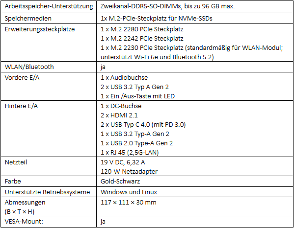 - 2,5G-LAN, Wi-Fi 6, Bluetooth und umfassende E/A-Unterstützung.