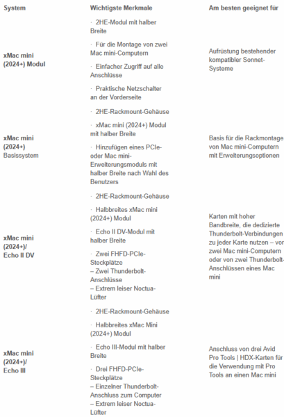 - xMac mini (2024+) / Echo III 2U-Rackmount-System mit Echo III-Modul (XMM-SYS-III) – 2.485 Euro