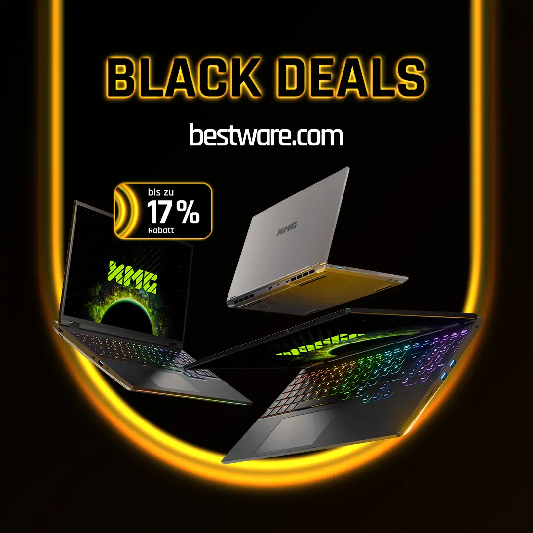 Einen ganzen Monat lang zelebriert bestware.com vom 3. November bis zum 2. Dezember 2025 die BLACK DEALS. Im Rahmen der größten Verkaufsaktion des Jahres gibt es nicht nur bis zu 17 Prozent Rabatt auf frei konfigurierbare Gaming-Laptops und Ultrabooks von XMG. Da bestware.com mittlerweile auch bereits gebaute und somit schneller lieferbare Fertigkonfigurationen der Notebooks anbietet, sind diese ebenfalls mit deutlichen Preisnachlässen erhältlich.
