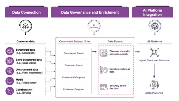 Vertrauen ist aber der Kern für den verantwortlichen Einsatz Künstlicher Intelligenz: Nutzer wollen sich darauf verlassen können, dass sensible Daten vertraulich, kontrolliert und konform bleiben, sobald Organisationen diese einsetzen. Der dafür notwendige ETL-Workflow (Extrahieren, Transformieren, Laden) – der Prozess, Informationen aus verschiedenen Quellen zu identifizieren, aufzubereiten und in eine einzige Quelle zu exportieren – erfordert aber nach wie vor viel Zeit und kann Compliance-Risiken verursachen, wenn Unternehmen ihn nicht korrekt steuern. Zugleich wollen die meisten Verantwortlichen keine zusätzliche KI-Plattform verwalten – Commvault Data Rooms wurden entwickelt, um diese Probleme zu lösen.