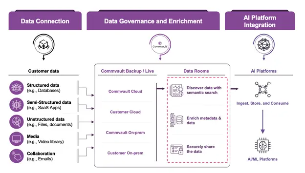Vertrauen ist aber der Kern für den verantwortlichen Einsatz Künstlicher Intelligenz: Nutzer wollen sich darauf verlassen können, dass sensible Daten vertraulich, kontrolliert und konform bleiben, sobald Organisationen diese einsetzen. Der dafür notwendige ETL-Workflow (Extrahieren, Transformieren, Laden) – der Prozess, Informationen aus verschiedenen Quellen zu identifizieren, aufzubereiten und in eine einzige Quelle zu exportieren – erfordert aber nach wie vor viel Zeit und kann Compliance-Risiken verursachen, wenn Unternehmen ihn nicht korrekt steuern. Zugleich wollen die meisten Verantwortlichen keine zusätzliche KI-Plattform verwalten – Commvault Data Rooms wurden entwickelt, um diese Probleme zu lösen.