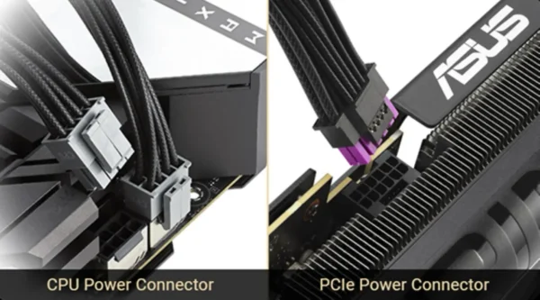 Die Netzteile der ASUS Pro WS Platinum-Serie bieten eine einfache Installation und effiziente, langlebige Leistung. Dank ATX 3.1- und PCIe 5.1-Kompatibilität sind diese Netzteile für die neueste Hardware gerüstet. Die biegsamen, geätzten Kabel verdienen besondere Aufmerksamkeit. Die farblich gekennzeichneten CPU- und PCIe-Stromanschlüsse und die hohe Flexibilität ermöglichen eine mühelose Installation der Komponenten und eine einfache Kabelführung.