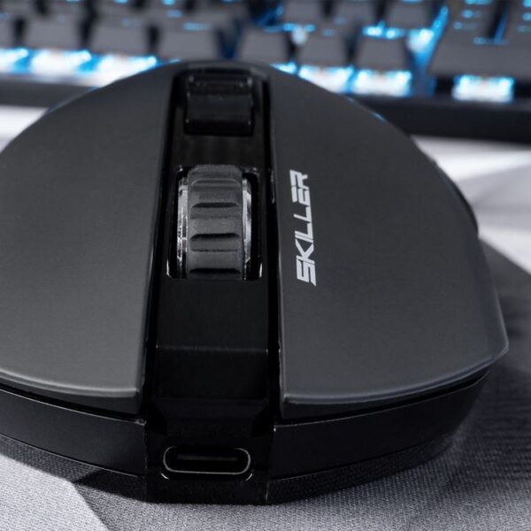 Die SKILLER SGM30W hält kabellos bis zu 70 Stunden durch und kann flexibel sowohl mittels mitgeliefertem USB-C-auf-USB-A-Kabel als auch kabellos aufgeladen werden.
