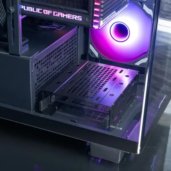 Dank eines seitlichen Lufteinzugs und gleich vier vorinstallierter 120-mm-ARGB-Lüfter ist trotz der großen Glasfläche eine starke Kühlleistung ab Werk möglich. Eine praktische ARGB-Steuerung sowie ein PWM-Lüfterhub mit fünf Plätzen gibt es dabei inklusive!