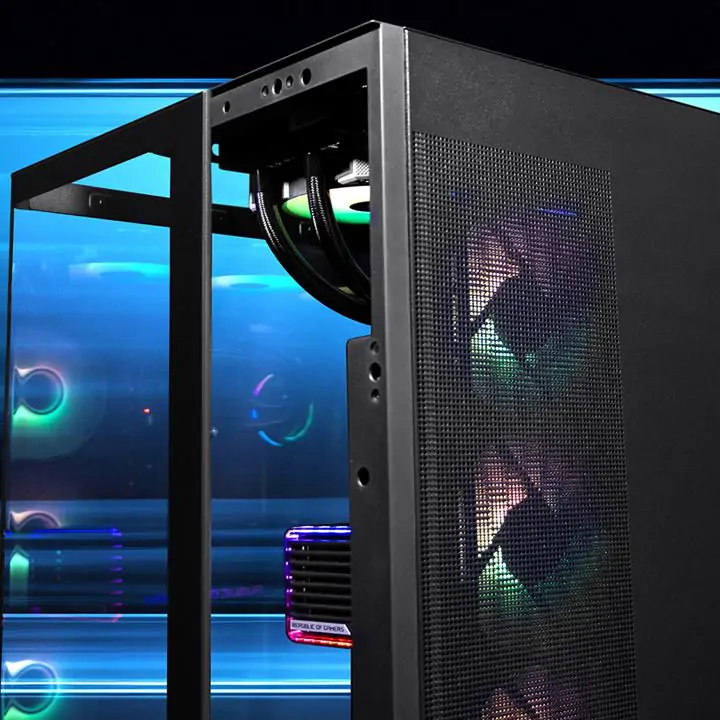 Die speziell gefertigte, durchgängige Glasfläche setzt deine Highend-Hardware mit einem beeindruckenden 270-Grad-Blick jederzeit perfekt in Szene.