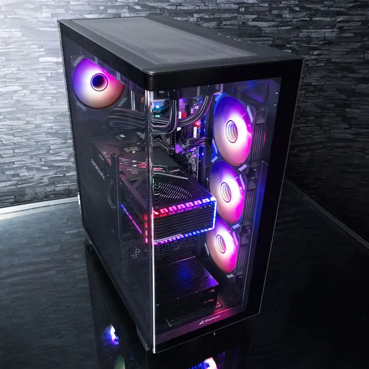 Dank eines seitlichen Lufteinzugs und gleich vier vorinstallierter 120-mm-ARGB-Lüfter ist trotz der großen Glasfläche eine starke Kühlleistung ab Werk möglich. Eine praktische ARGB-Steuerung sowie ein PWM-Lüfterhub mit fünf Plätzen gibt es dabei inklusive!
