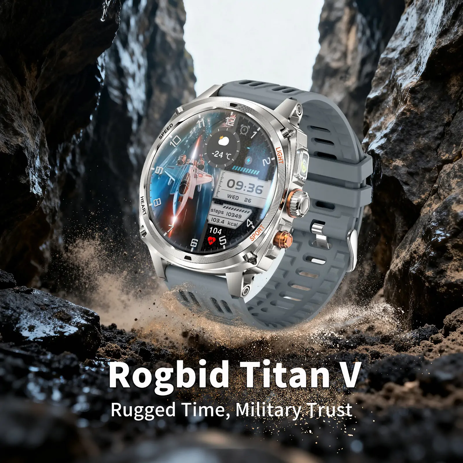 Built to last, the Titan V features a full-metal case and meets military-grade standards, handling daily knocks and outdoor adventures effortlessly. Its 1.75-inch full-screen display ensures clear visibility, while the integrated tactical flashlight is a lifesaver for night trips or emergencies. With a 5ATM waterproof rating, the smartwatch easily withstands rain, splashes, and swimming, keeping up with your adventures anytime, anywhere.