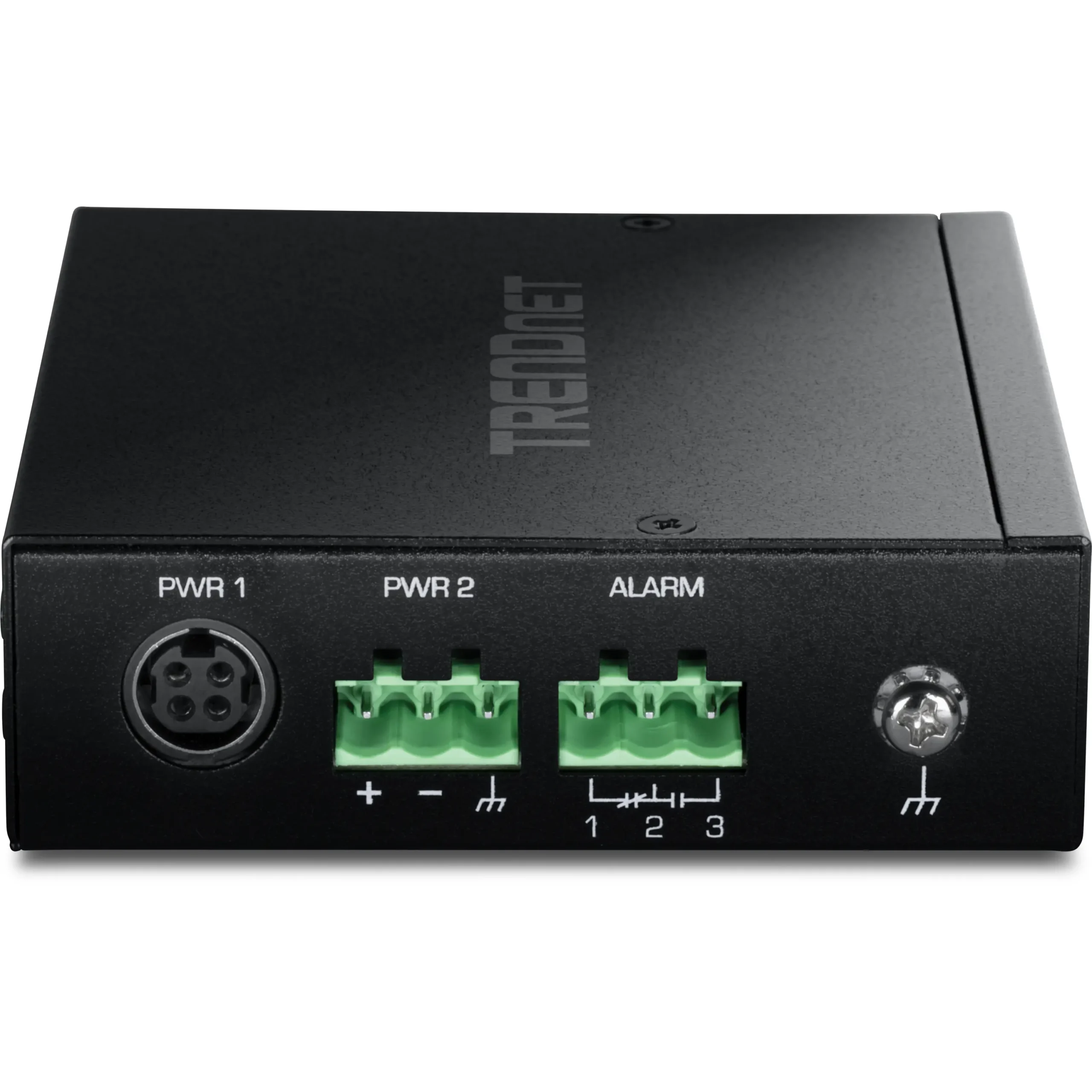 Die Stromversorgung erfolgt über zwei unabhängige Eingänge mit 48 Volt und 9 bis 60 Volt Gleichspannung. Diese redundante Auslegung erhöht die Betriebssicherheit, während ein integrierter Überlastungsschutz die Elektronik vor Beschädigungen bewahrt. Ein Alarmrelais signalisiert Stromausfälle an übergeordnete Überwachungssysteme, sodass Administratoren unmittelbar auf Versorgungsunterbrechungen reagieren können. Die Netzteile sind separat als Modelle TI-M6024 und 48VDC3000 erhältlich.
