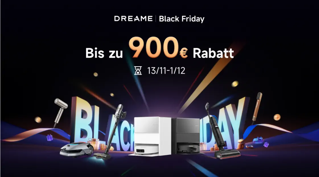 Der Black Friday steht vor der Tür, und Dreame Technology, ein weltweit führender Anbieter von Smart-Home-Geräten, bereitet sich auf eines der spannendsten Shopping-Events des Jahres vor. Zum Start in die Weihnachtssaison bietet Dreame exklusive Rabatte von bis zu 900 € auf eine Auswahl seiner meistverkauften Produkte – mit den niedrigsten Preisen des Jahres. Von hochmodernen Saugrobotern und vielseitigen Nass- & Trockensaugern bis hin zu leistungsstarken Akku-Staubsaugern und innovativen Rasenmähern – diese Deals sind perfekt für alle, die ihr Smart Home in diesem Black Friday auf das nächste Level bringen möchten.