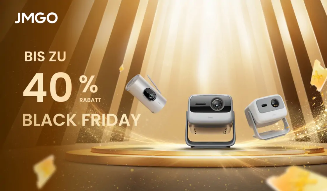 Kino-Feeling im Wohnzimmer so günstig wie nie: Zum Black Friday reduziert JMGO den Preis der Premium-Laserprojektoren. So lassen sich vom 20. November bis zum 01. Dezember bis zu 1.000 Euro sparen. Der Preis des kompakten Modells N1S 4K fällt auf 799,00 Euro (statt 1.299,00 Euro UVP), der leistungsstarke Alleskönner N1S Ultimate ist für sagenhafte 1.699,00 Euro (statt 2.799,00 Euro UVP) erhältlich. Auch der handliche PicoPlay ist mit 299,00 Euro inklusive 3D-Brille ein echtes Projektoren-Schmuckstück für unterwegs und zuhause. Die Modelle von JMGO überzeugen mit modernster Laser-Technologie, Google TV, dem Support von Netflix und besonderen Gimbal-Designs. Wer auf gestochen scharfe Bilder, satte Farben und smarte Features steht, sollte sich diese Black-Friday-Angebote nicht entgehen lassen.