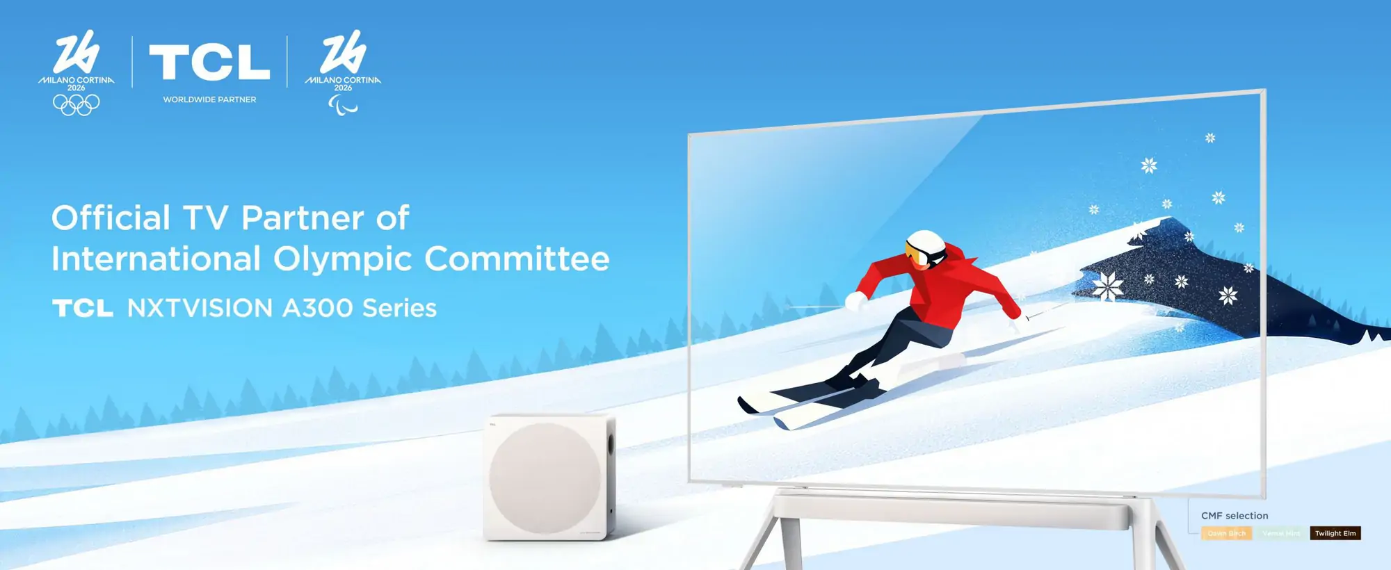 Als offizieller weltweiter Partner der Olympischen und Paralympischen Spiele in den Kategorien Heimkino- und Haushaltsgeräte sowie als offizieller TV-Partner macht es TCL mit den Fernsehern der Serie TCL NXTVISION A300 noch einfacher, sich als Teil des Geschehens zu fühlen. Der NXTVISION-Fernseher wurde entwickelt, um mit einer Bildwiederholfrequenz von 144 Hz für gestochen scharfe Bilder bei schnellen Bewegungsszenen zu sorgen und dabei mit einem beeindruckenden Sound von Bang & Olufsen eine lebendige Atmosphäre zu liefern. Kombiniert mit einem eleganten Design fühlt man sich wie auf einem Platz in der ersten Reihe im Stadion.