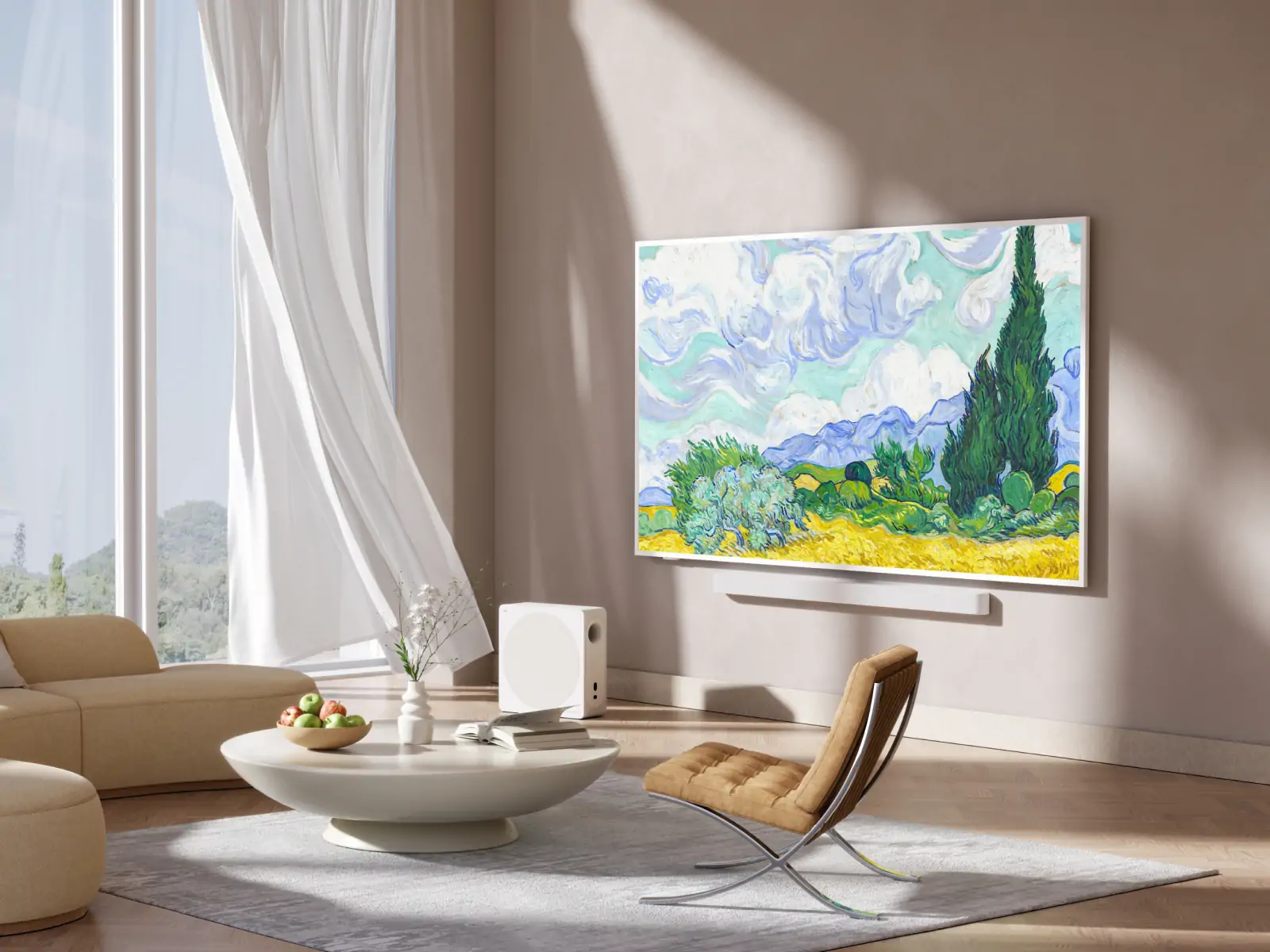 Die A300-Serie überzeugt nicht nur durch innovative technische Daten, sondern auch durch ihr Design. Mit ihrem weißen, ultraschlanken Gehäuse mit einer Dicke von nur 27,9 mm verleiht sie Ihrem Zuhause einen hellen und künstlerischen Touch. Über die integrierte Kunstbibliothek können Sie aus kuratierten Sammlungen auswählen oder persönliche Fotos anzeigen, wenn der Fernseher ausgeschaltet ist, und so den Bildschirm in eine sich ständig verändernde Galerie verwandeln. Durch Umschalten zwischen Kunstmodus und TV mit einem Tastendruck können Zuschauer ihren Raum in Sekundenschnelle von einer persönlichen Galerie in einen Ort zum Verfolgen der Olympischen Spiele verwandeln.