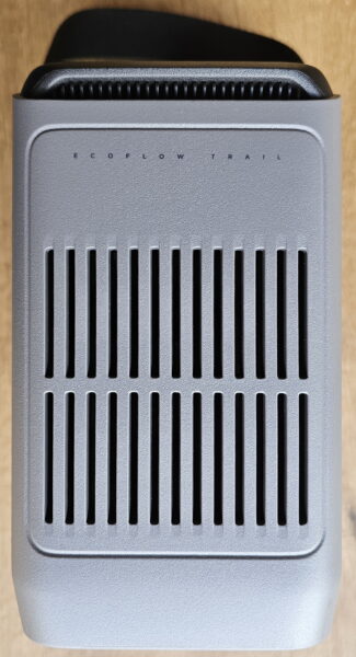 Getragen wird die Powerstation über einen robusten Henkel aus Stoff. An den Seiten scheinen Lüftungsöffnungen angebracht zu sein, genauso wie an der Rückseite. Ein Lüfter ist aber nicht verbaut und man kann auch nicht ins Innere der Trail 300 schauen. Geschützt ist die Trail-Serie nach IP30, also gegen Fremdkörper, die größer sind als 2,5 Millimeter, aber nicht gegen Wasser.