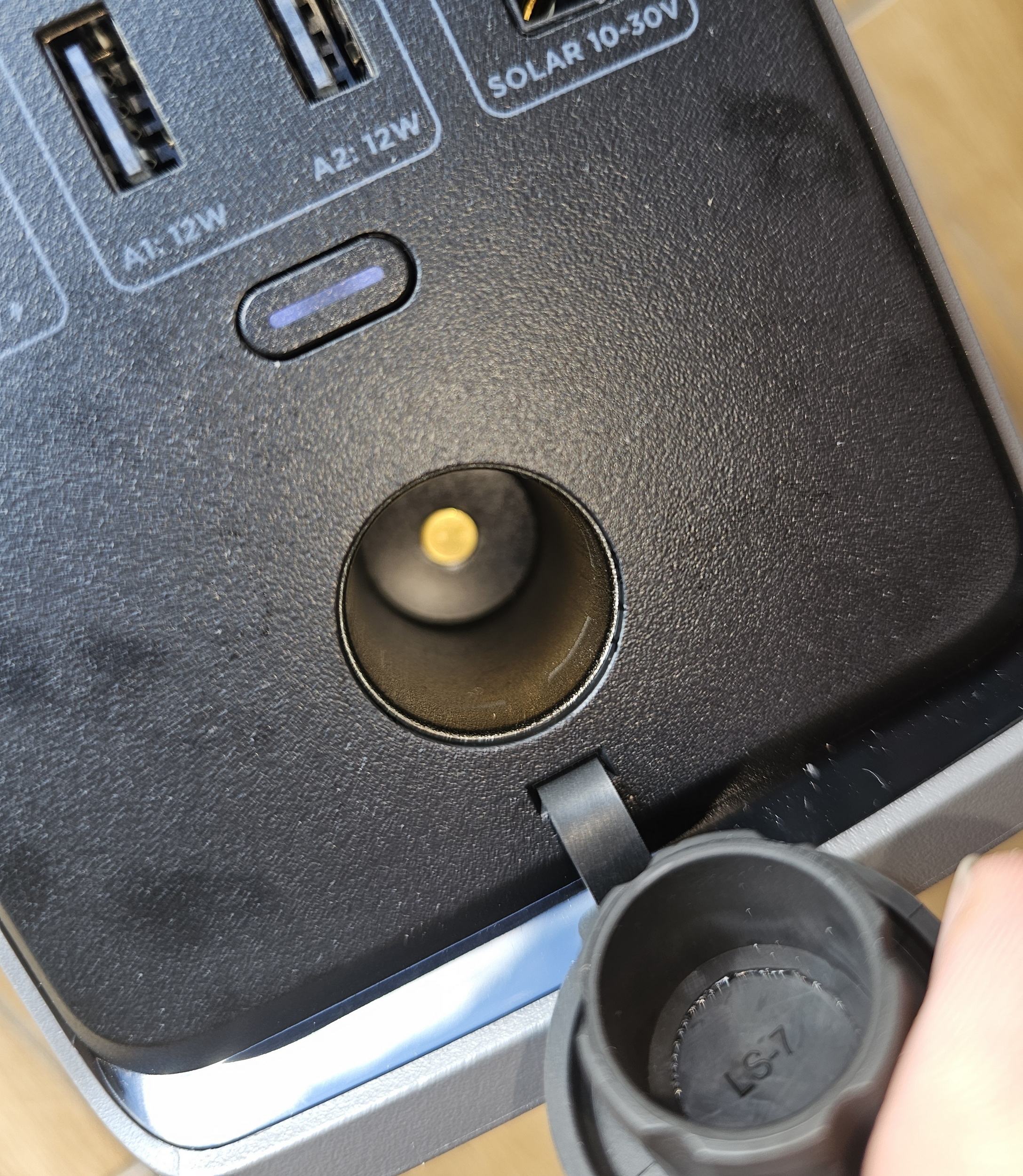 Wie schon erwähnt gibt es zwei USB-C Ports mit bis zu 140 Watt, welche auch zum Aufladen der Powerstation genutzt werden können und unabhängig voneinander ihre Leistung abgeben. Das Aufladen mit zwei Ladegeräten und bis zu 280 Watt ist hingegen manchmal etwas Glückssache, mehr dazu später im Praxisteil. Die beiden USB-A Ports liefern jeweils bis zu 12 Watt und die Kfz-Steckdose bis zu 120 Watt. In Summe können maximal 300 Watt aus der Powerstation entnommen werden. Der Solareingang wird auch für das Aufladen im Auto verwendet und ist im Bereich von 10-30 Volt funktionsfähig, maximal 110 Watt können eingespeist werden.