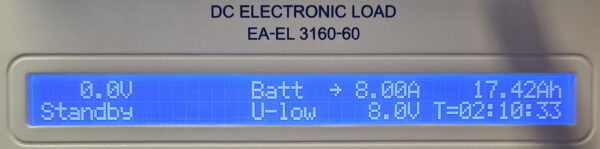 Dieser Wert war für mich unbefriedigend, deshalb habe ich schon lange darüber nachgedacht, den USB-C Port mit zu testen. Da die meisten Laptops mit 20 Volt geladen werden, habe ich diese Spannung und 4,5 Ampere für den Test gewählt. Hierbei konnten knapp 13,5 Ah bzw. 270 Wh entnommen werden. Das entspricht einem Wirkungsgrad von 93,7 Prozent, was richtig gut ist – und für die meisten Nutzer im Alltag auch die relevantere Anschlussart.