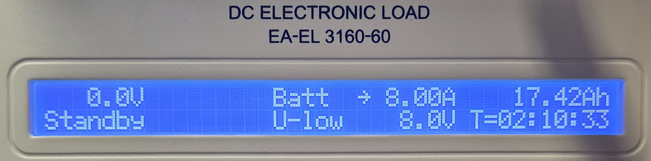 Mit einem konstanten Strom von 8 Ampere ist die Ecoflow Trail 300 nach gut zwei Stunden vollständig entladen und hat in dieser Zeit 17,4 Amperestunden abgegeben. Bei der gemessenen Spannung von 13,4 Volt ergibt dies insgesamt 233 Wattstunden und einen Wirkungsgrad von nur 81 Prozent.
