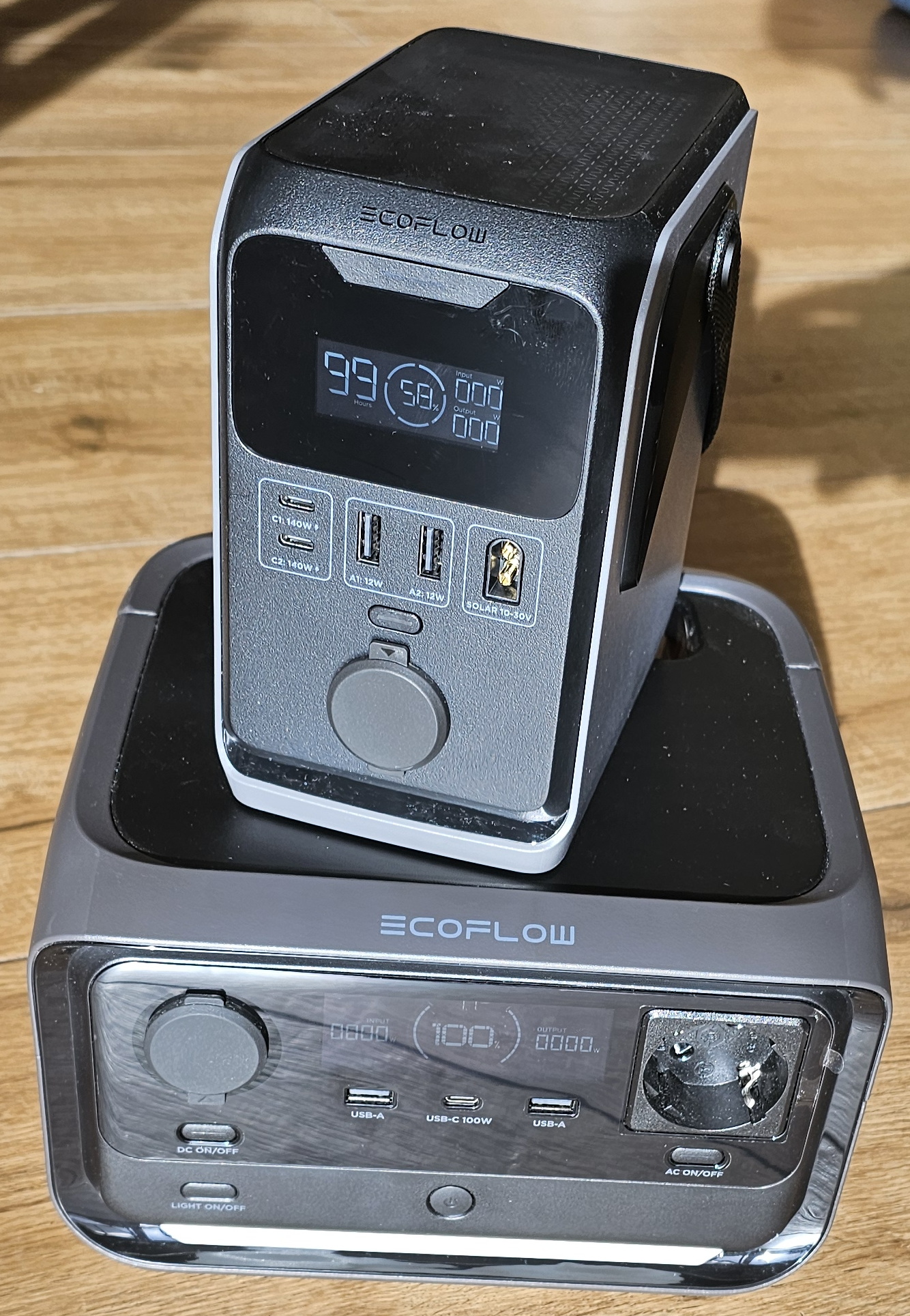 Dafür hat sie zwei USB-C Ports, die bis zu 140 Watt bereitstellen und gleichzeitig zum Laden verwendet werden können. Gerade unterwegs ist es praktisch, wenn man jedes USB-C Netzteil mit 20 Volt nutzen kann – egal, ob es nur 30 oder 100 Watt bereitstellt – es funktioniert. Wenn ihr viel unterwegs seid und regelmäßig eure Geräte nachladen müsst, kann ich euch die Ecoflow Trail 300 empfehlen, da sie auch preislich mit aktuell 179 Euro erschwinglich ist. Einziger Wermutstropfen sind die drei Jahre Garantie – fünf Jahre wie bei der River Serie wären schön gewesen.