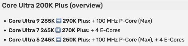 Damit behält Intel die Core-Ultra-200-Nomenklatur beim Arrow Lake Refresh also bei und ergänzt lediglich den Plus-Zusatz – ein bewusster Schritt, um Verwechslungen mit der Core Ultra 300 Serie alias Panther Lake zu vermeiden, die Anfang 2026 erscheinen soll.