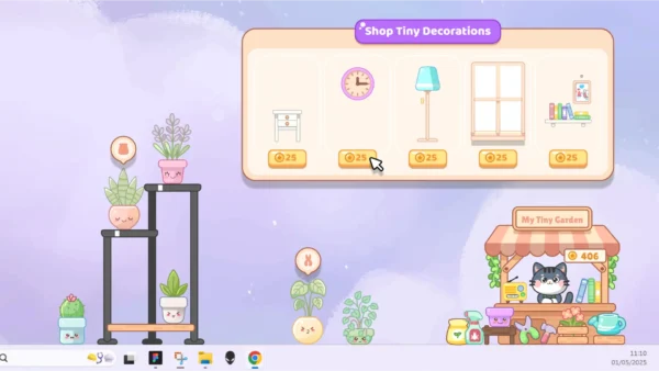 - Decorate your desktop: Freely move your plants around and create a charming environment while you use your computer.