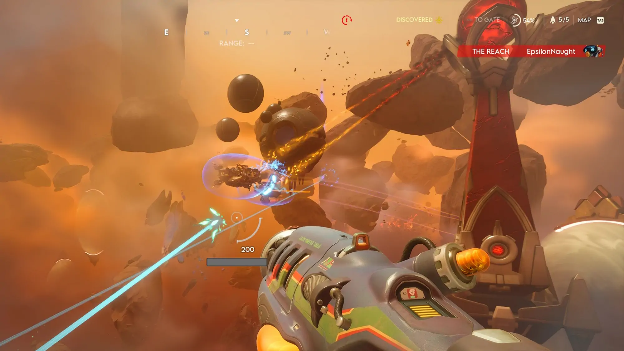 - Der Resonator: Spielerinnen und Spieler nutzen den Resonator, eine neue rhythmische Waffe, die teils Energiekanone, teils Granatwerfer ist. Der Resonator wird aufgeladen, indem Objekte mit seinem Strahl getroffen werden. Anschließend kann mit einem aufgeladenen Rechtsklick eine Granate abgefeuert werden, die explosiven Schaden verursacht.