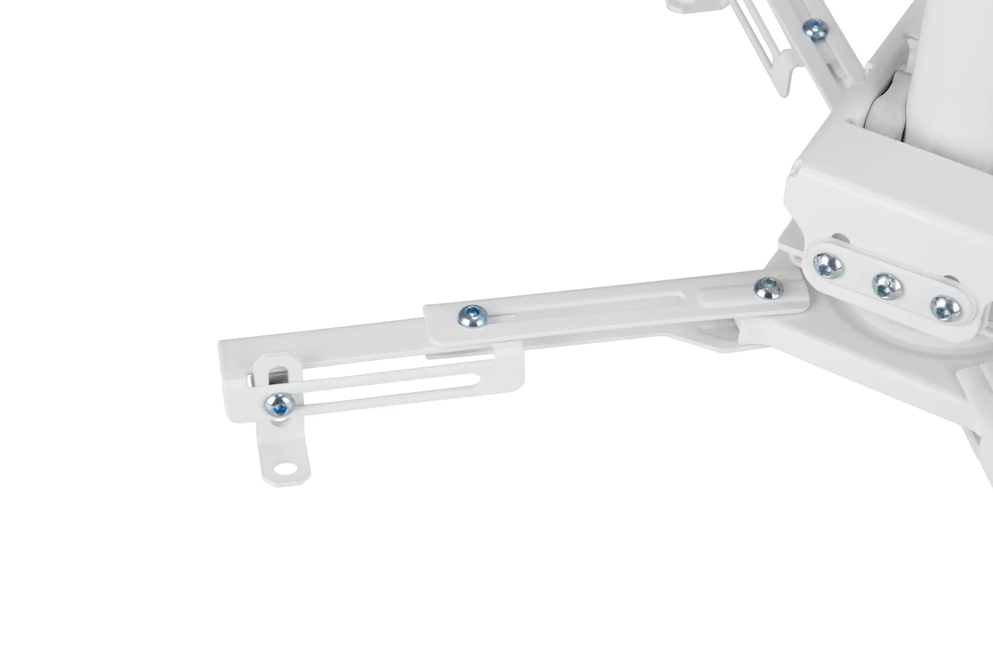 Die variabel einstellbare Länge zwischen 74,5 und 114,5 Zentimetern ermöglicht eine präzise Positionierung der Bildfläche – angepasst an Raumhöhe und Projektionsverhältnis. Durch schwenkbare und neigbare Gelenke lässt sich der Projektor stufenlos ausrichten: mit bis zu 20° Neigung, 8° seitlichem Schwenkspielraum und vollständiger 360°-Rotation. Die vier verstellbaren Tragarme passen sich dabei flexibel den gängigen Beamer-Größen an, während die Feinjustierung an der Deckenplatte für exakte Ausrichtung sorgt – unabhängig von der baulichen Gegebenheit.