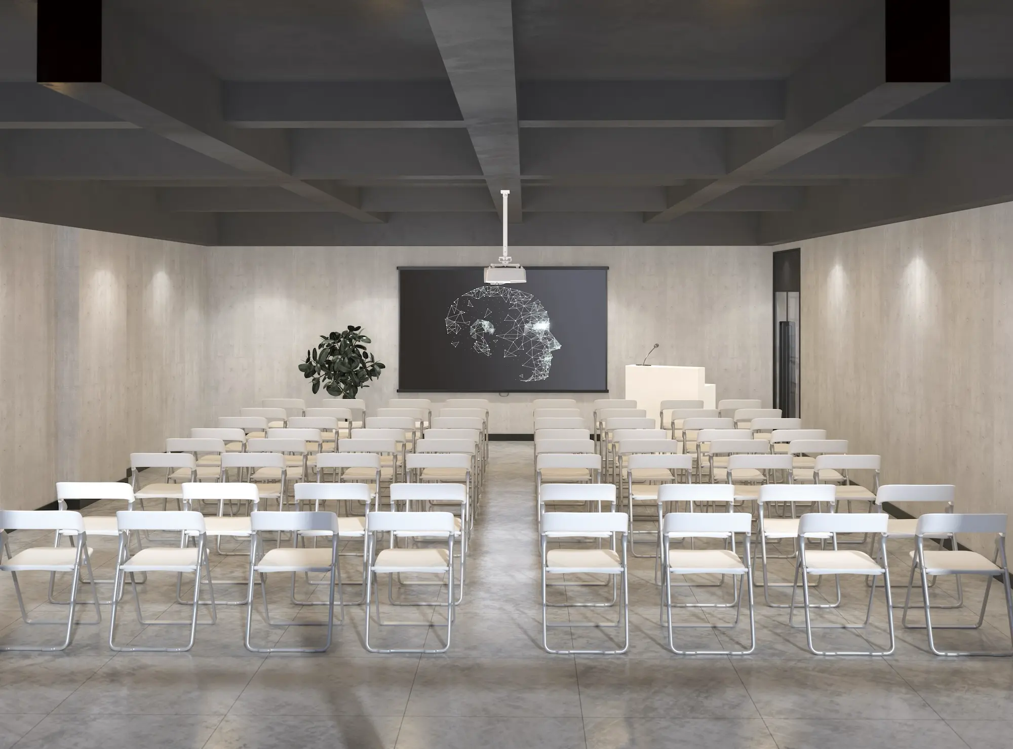 Die Halterung trägt Projektoren und Beamer mit einem Gewicht von bis zu 35 Kilogramm mühelos. Ihre weiße Oberfläche fügt sich unaufdringlich in jede Raumarchitektur ein, während die intelligente Konstruktion auch anspruchsvolle Montagesituationen – etwa an schrägen Decken – sicher meistert.