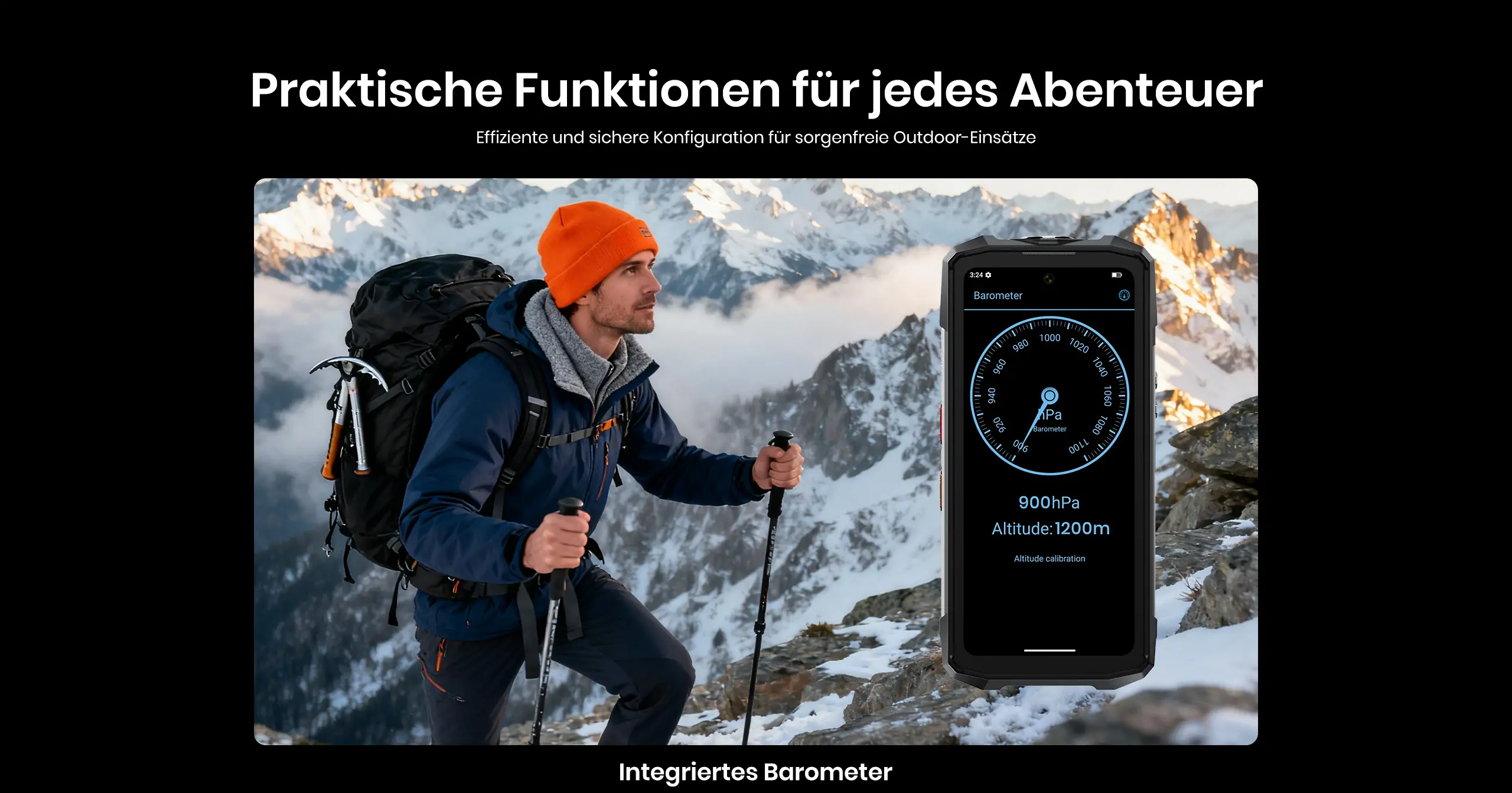 Es bietet eine Sichtweite von bis zu 50 Metern bei völliger Dunkelheit und übertrifft damit herkömmliche robuste Outdoor-Smartphones, die auf 5 bis 10 Meter begrenzt sind.