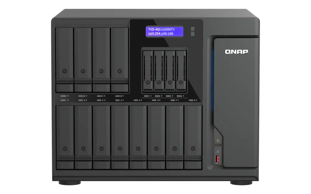 Entwickelt für KI-gestützte Bild und Videoanalyse, Virtualisierung, Multimedia-Verarbeitung und groß angelegte Backups, bietet das TVS-AIh1688ATX 12 SATA-HDD-Einschübe und 4 U.2-NVMe/SATA-SSD-Steckplätze. Mit Unterstützung für High-Availability-(HA)-Architektur, Thunderbolt™ 5 und 100GbE-Netzwerkerweiterung ist es eine leistungsstarke Edge-AI-Storage-Plattform für zukunftsorientierte Unternehmen.