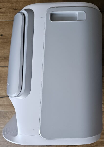 In der Station befindet sich gut geschützt der Roboter und in den Wasserbehältern weiteres Zubehör. Die Station selbst ist gut 43x40x46 cm groß, hinzu kommt das Anschlusskabel.
