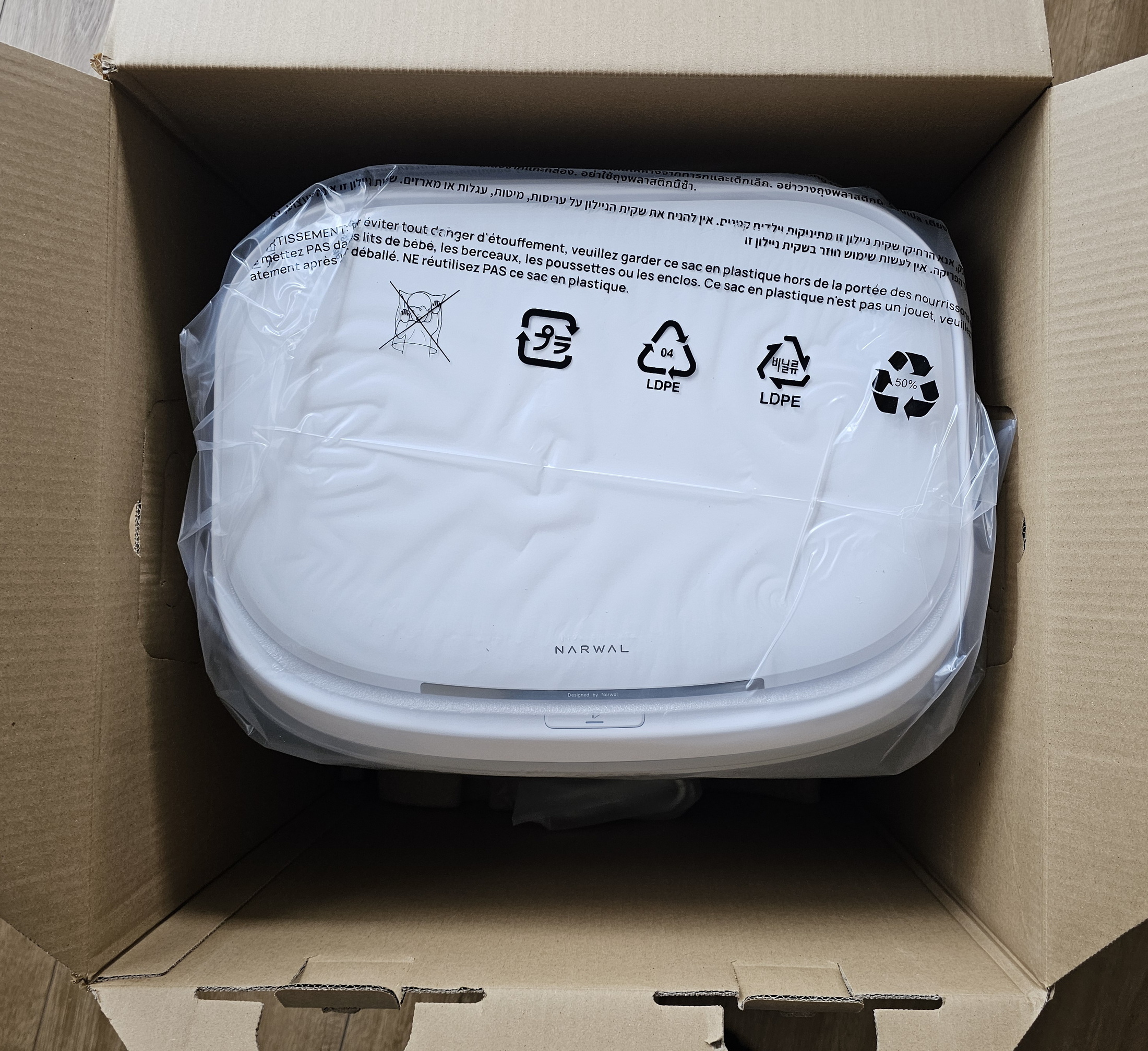 Geliefert wird der Narwal Flow in einem großen Karton, der auch ziemlich schwer ist.