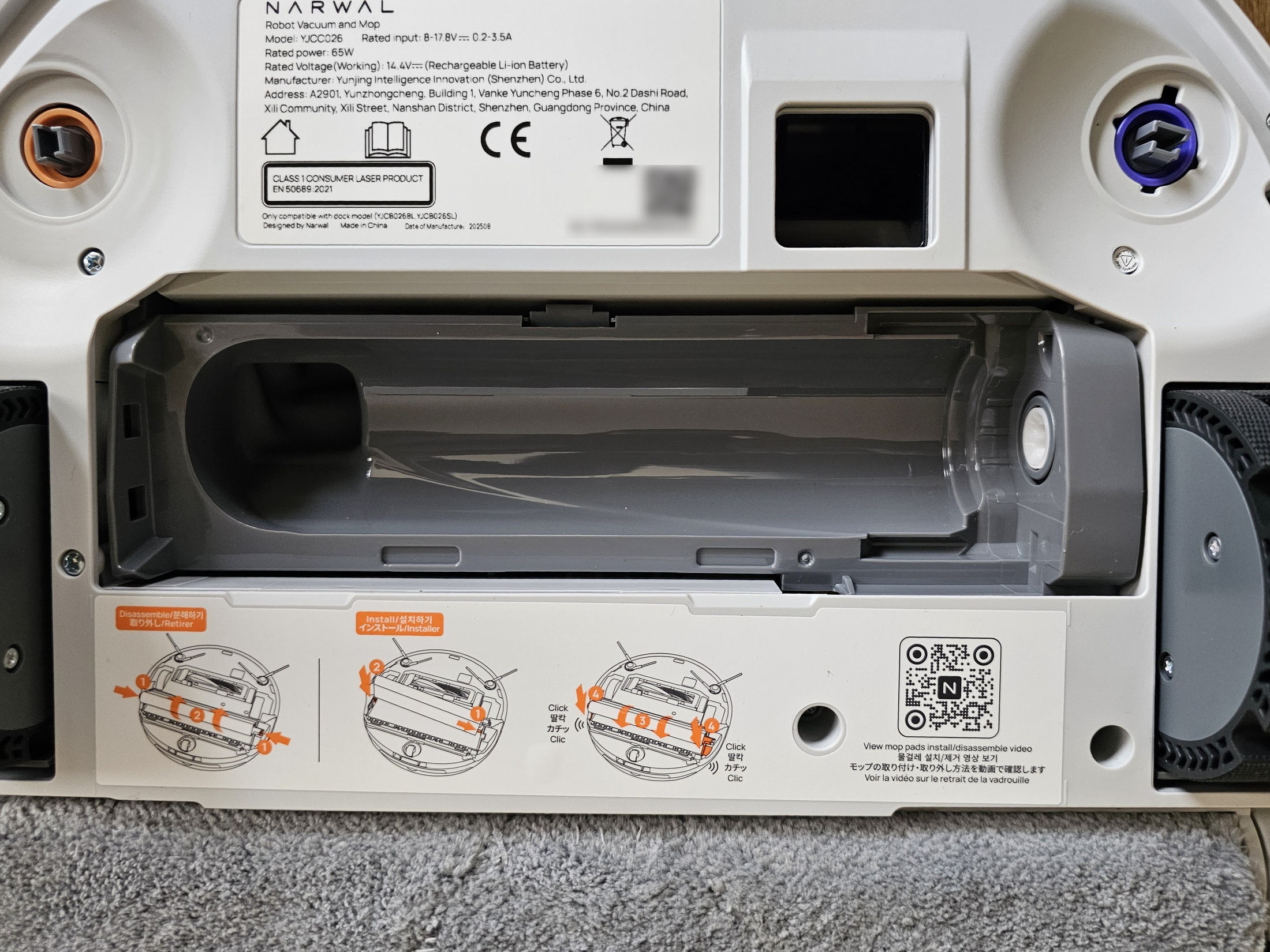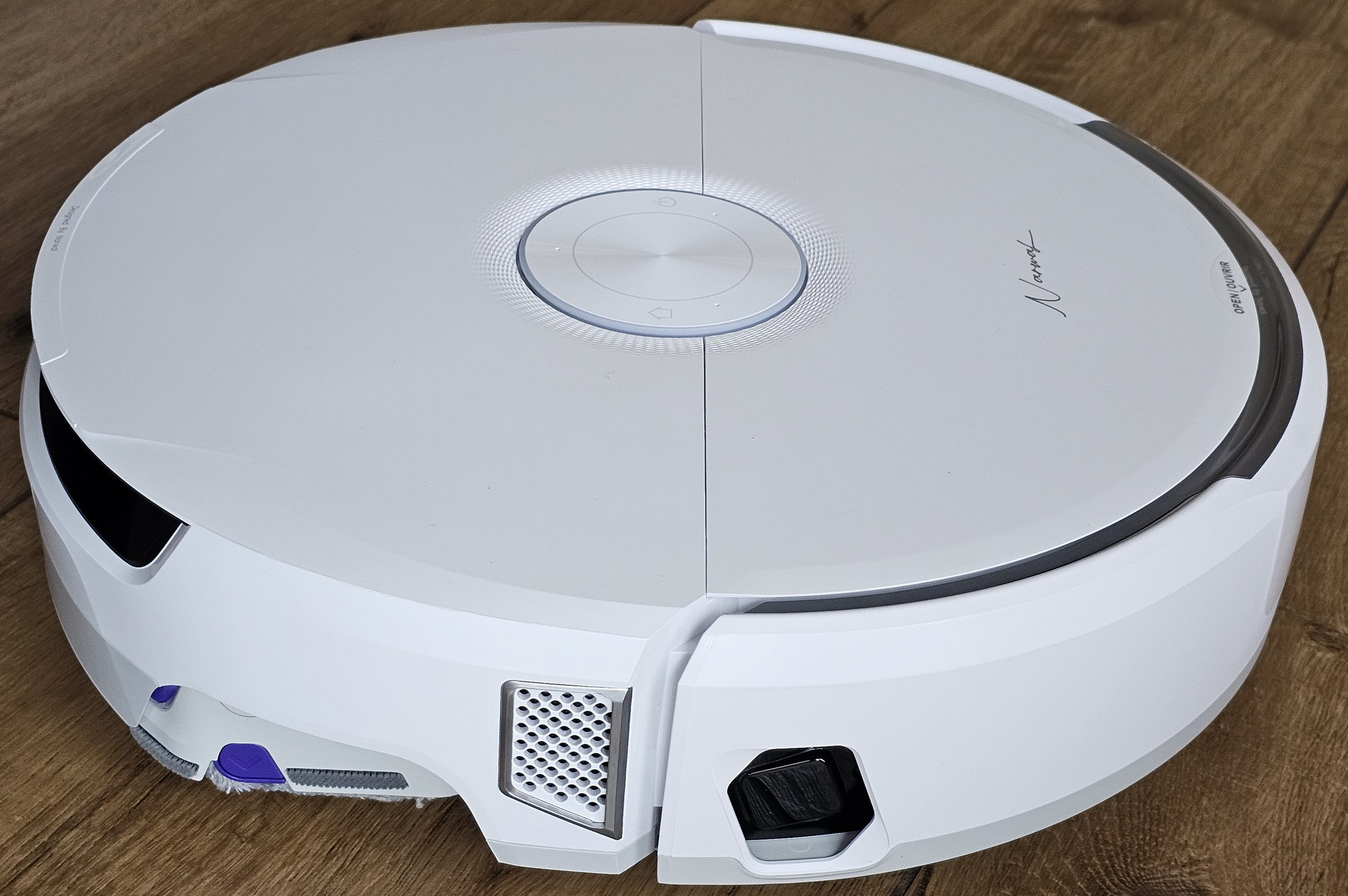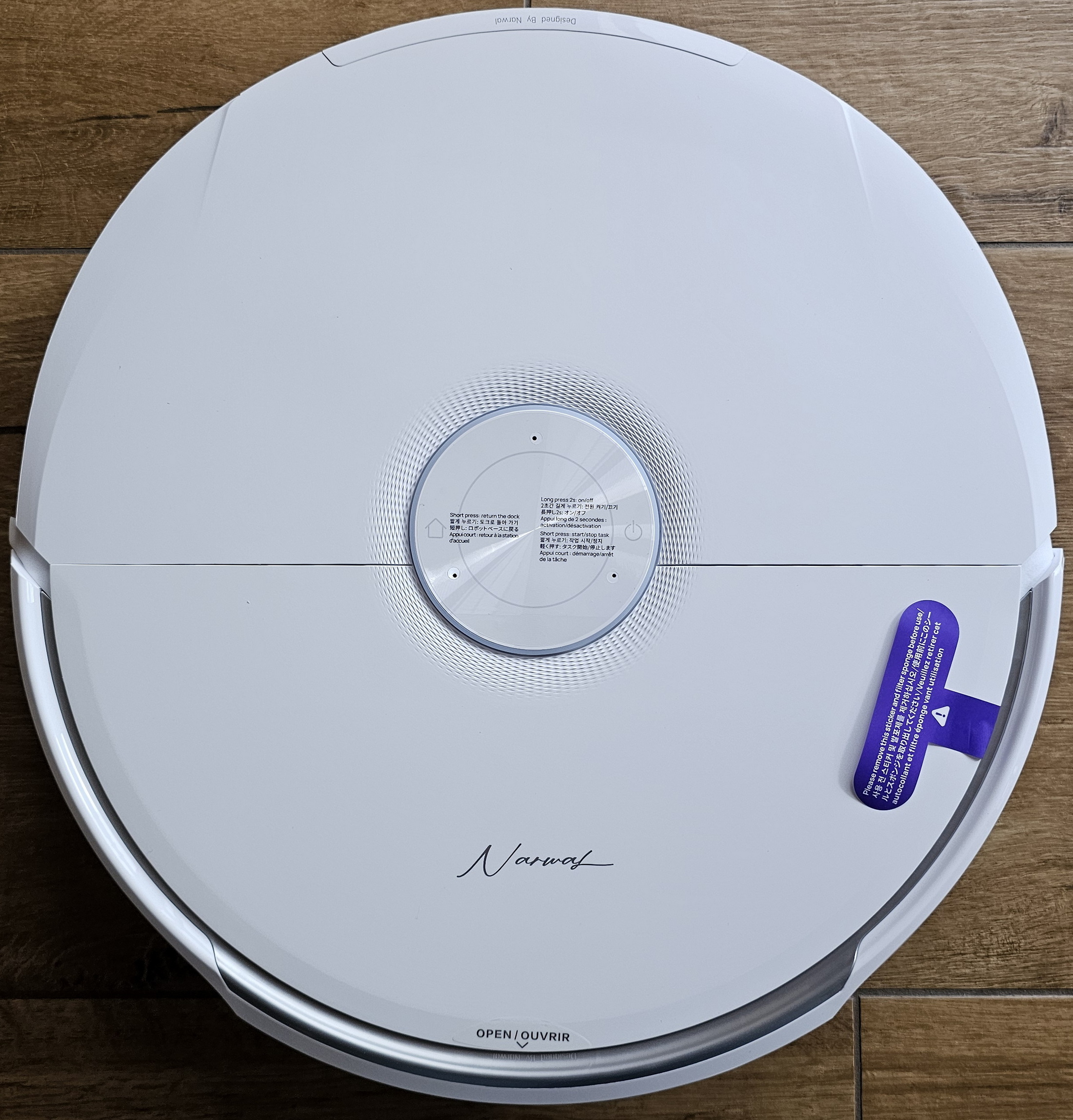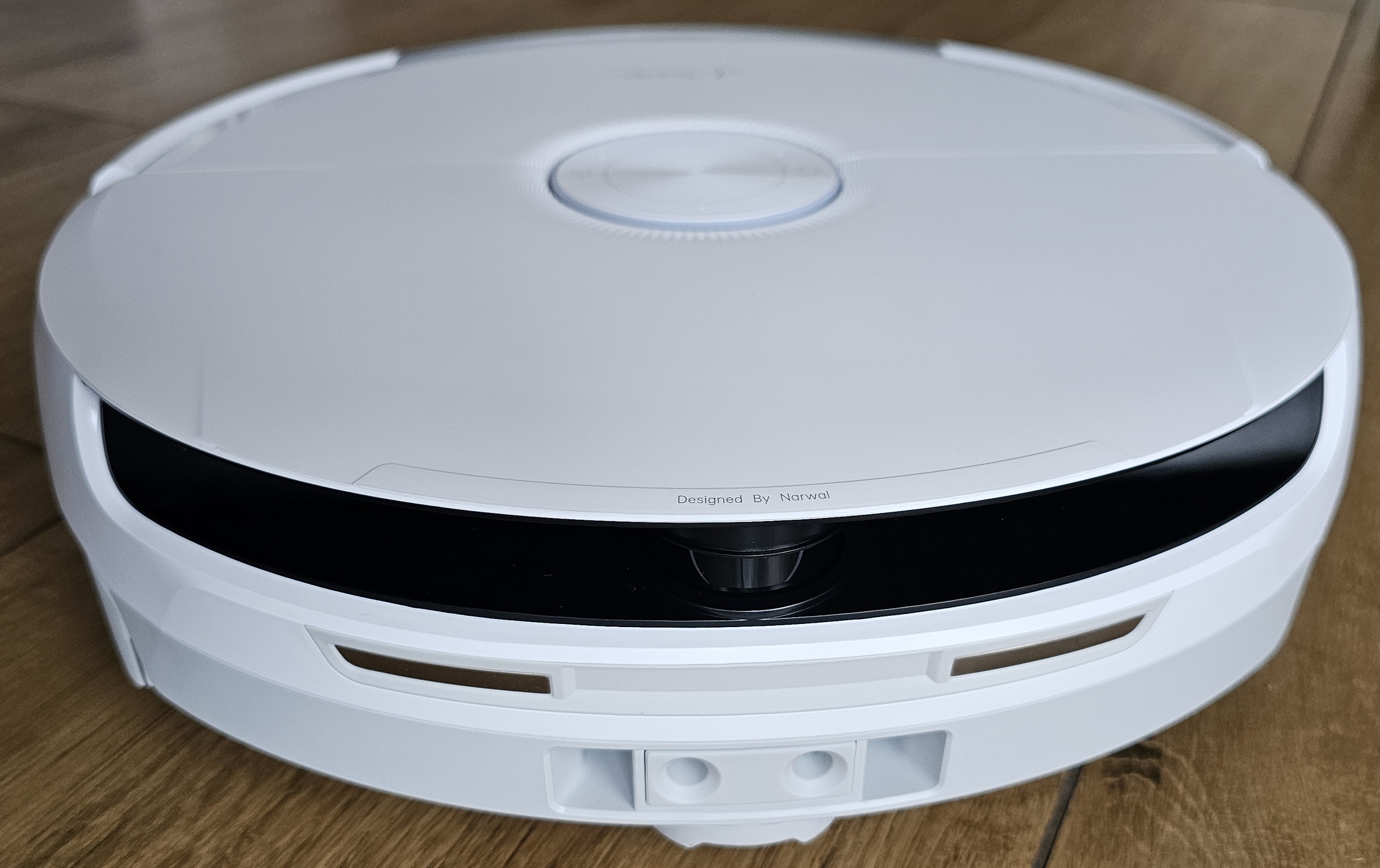 Am Narwal Flow fällt sofort auf, dass er keinen herausragenden Turm für den LiDAR Sensor hat. Stattdessen warten dort die Tasten für die Steuerung des Roboters auf.
