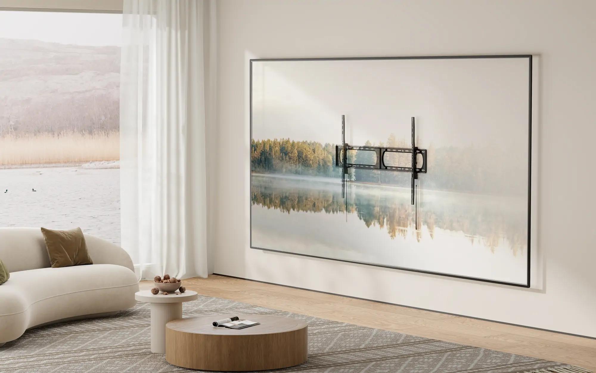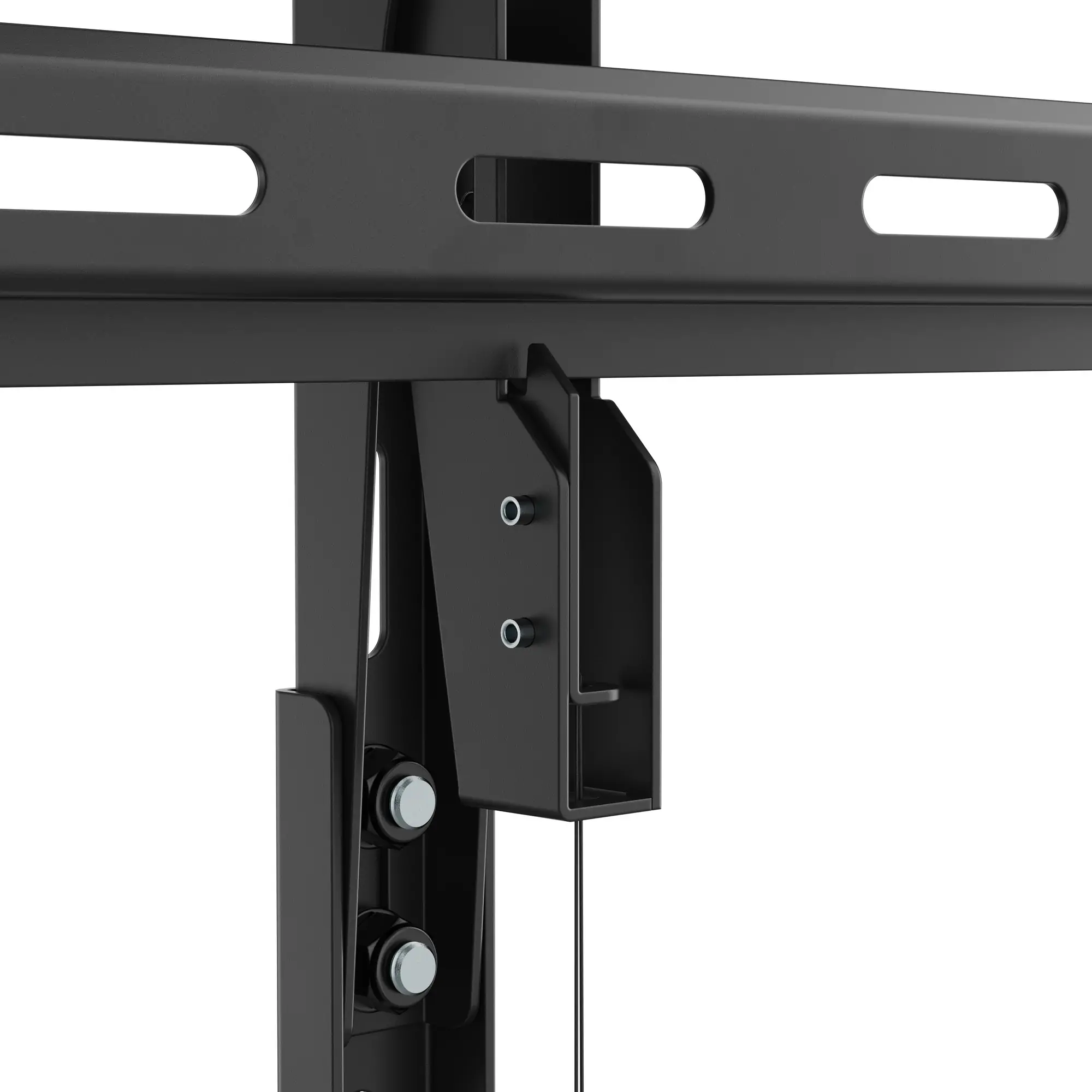 Der geringe Wandabstand von nur 62 Millimetern lässt selbst großformatige Displays nahezu fließend in die Architektur übergehen. Auf diese Weise verschmilzt das Bild mit der Wandfläche, ohne dass die Technik in den Vordergrund tritt. Für die individuelle Anpassung sorgt eine werkzeuglose Neigefunktion: Mit einem Spielraum von sieben Grad nach oben oder unten lässt sich der Blickwinkel fein justieren, sodass Spiegelungen reduziert und ideale Sichtachsen geschaffen werden.