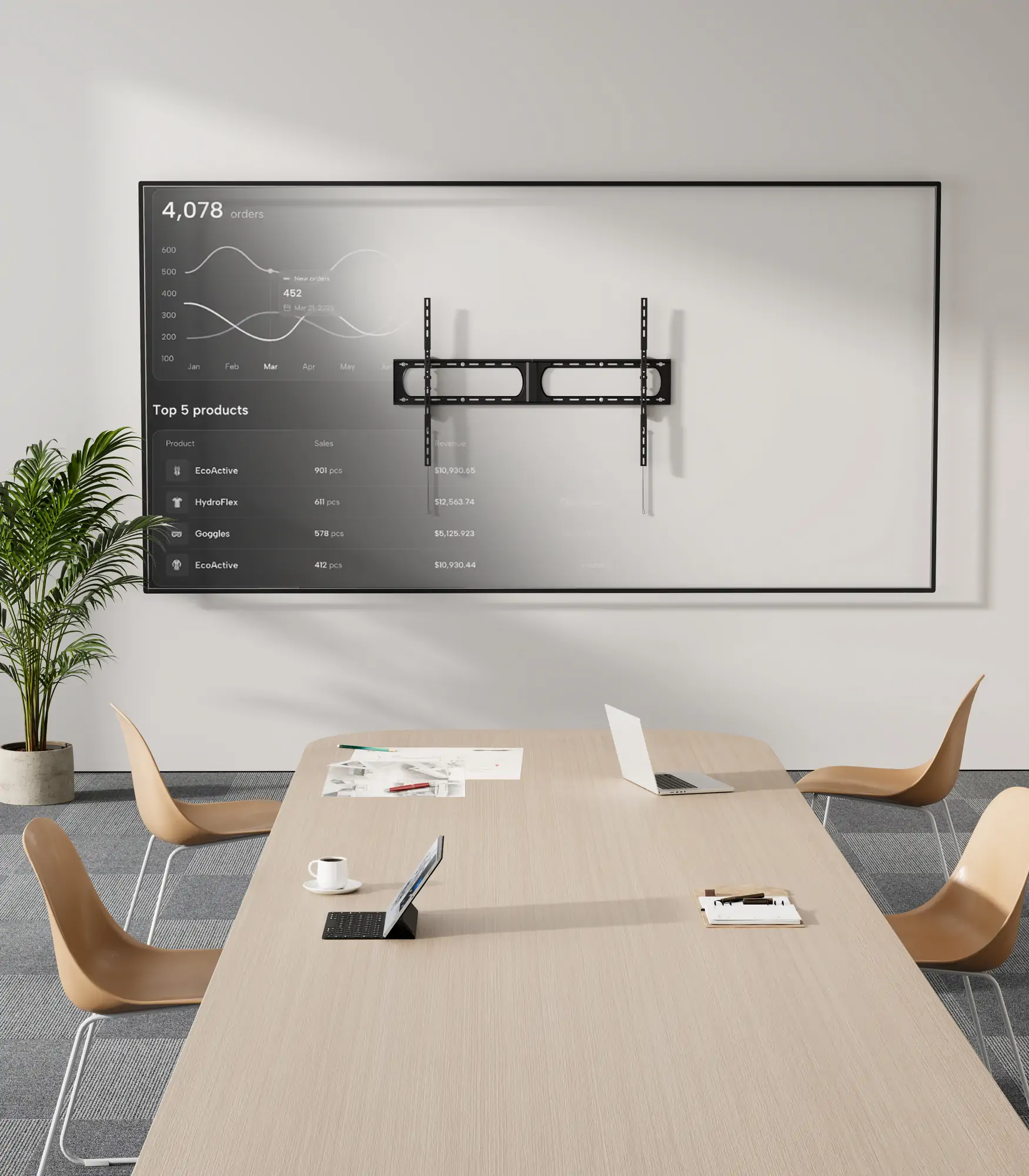 Zurückhaltend im Erscheinungsbild, zuverlässig in der Funktion. So tritt die Technik bewusst in den Hintergrund, um das Wesentliche hervorzuheben: den Bildschirm, der den Raum prägt. Die PLANO Flat 140-12080T schafft dafür den Rahmen – stabil, unaufdringlich und klar gestaltet.